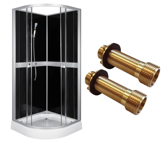 Duschkabine 80x80x210cm/4 mm mit Duschwanne und Duscharmatur, Anschlüssen für Armaturen, CLASSIC Schwarz
