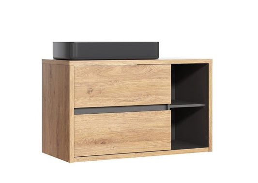 Badezimmerschrank mit weißem Aufsatzwaschbecken, 100x46x60 cm, Eiche Grafit, DEVON, Comad