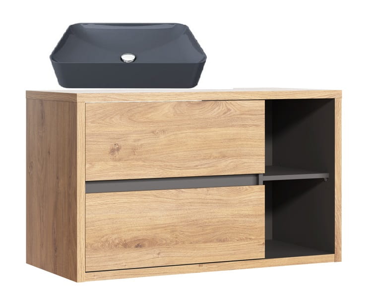 Badmöbel mit grauem Aufsatzwaschbecken CREAVIT mat 100x46x60cm Eiche Grafit DEVON, Comad