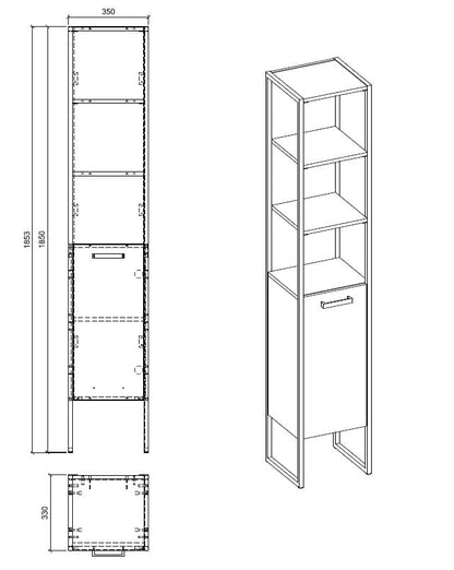 Brooklin Moderne Badezimmer-Hochschrank 185 x 35 x 33