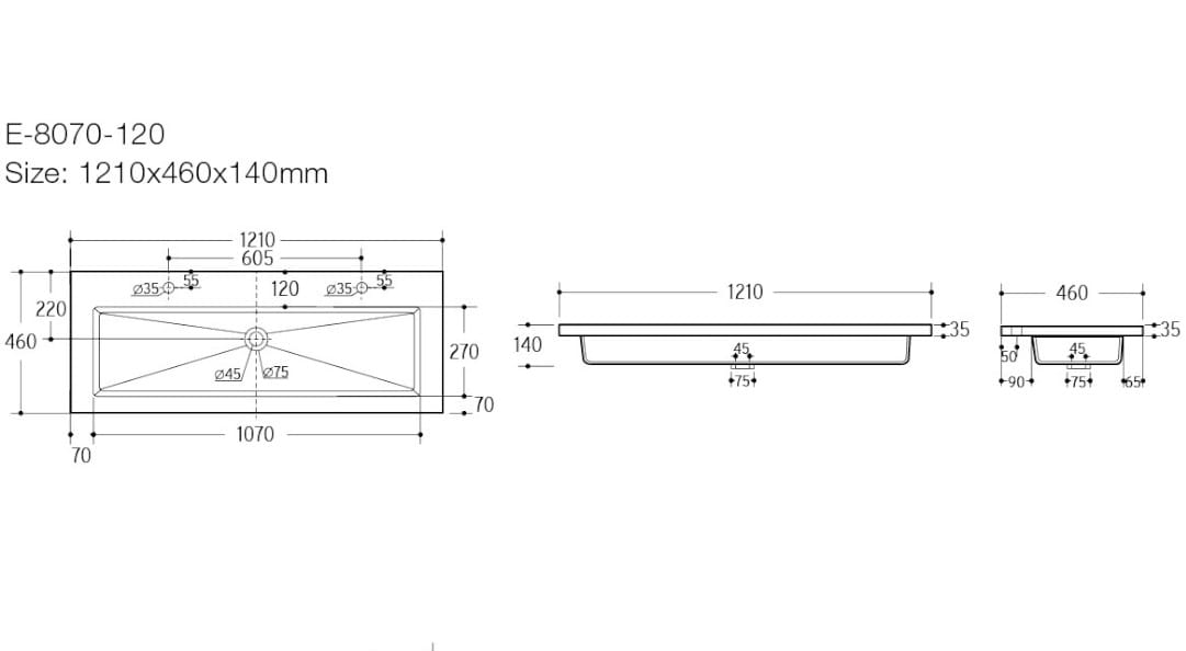 Hochwertiges Keramikwaschbecken 120x46 cm einzeln