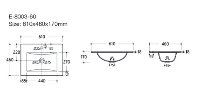 Das Waschbecken verfügt über einen standardmäßigen Auslauf und einen Wasserhahnanschluss, sodass es einfach in Ihre bestehende Badarmatur integriert werden kann. Mit seinem zeitlosen Design fügt es sich harmonisch in jedes Badezimmer ein.
